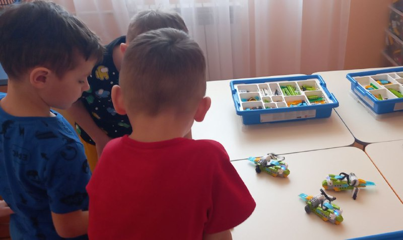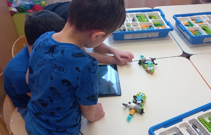Ребенок или группа детей конструирует модели при участии родителей или педагогов.