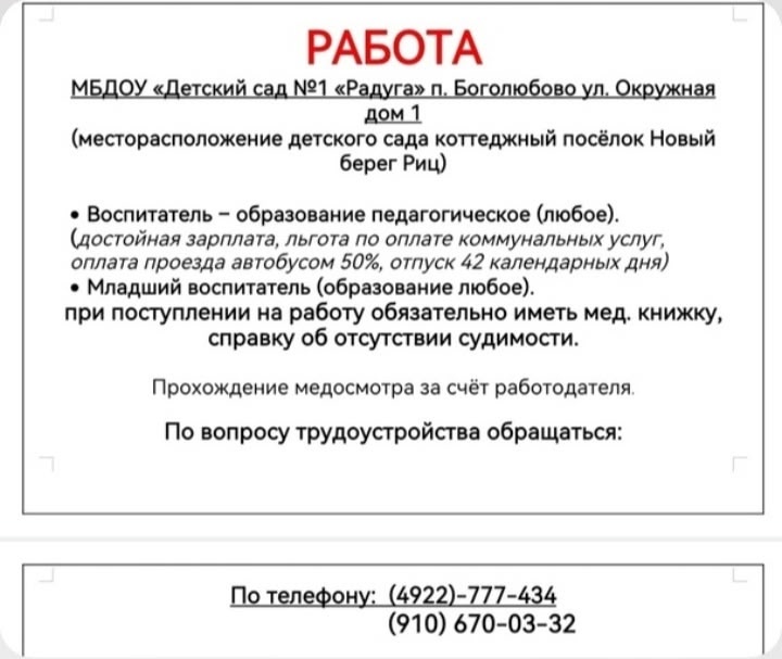 Адрес: 601270, Россия, Владимирская область, Суздальский район, поселок Боголюбово, улица Окружная, дом 1