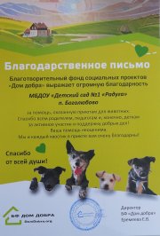 Благодарность за помощь, оказанную приютам для животных