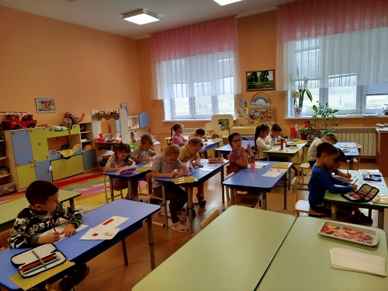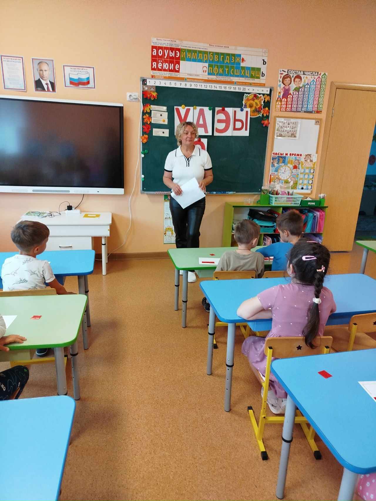Педагог- психолог, Наталья Александровна, провела занятие в подготовительной группе по подготовке детей грамоте.